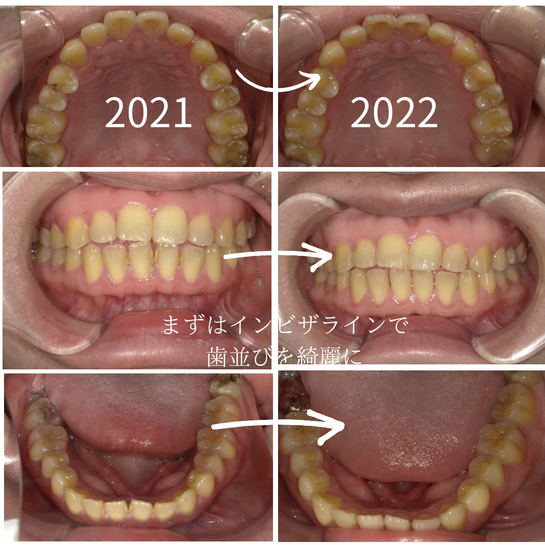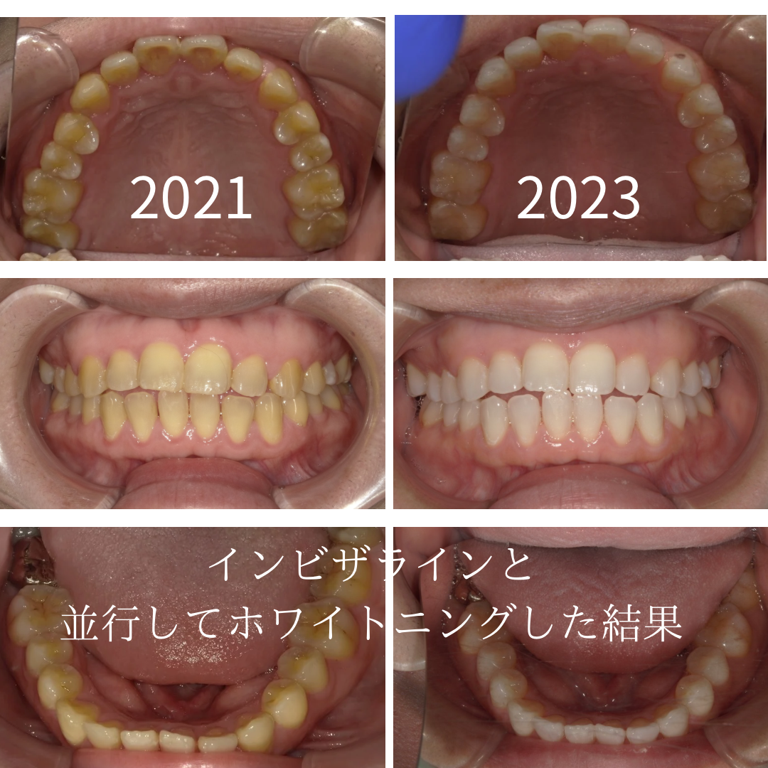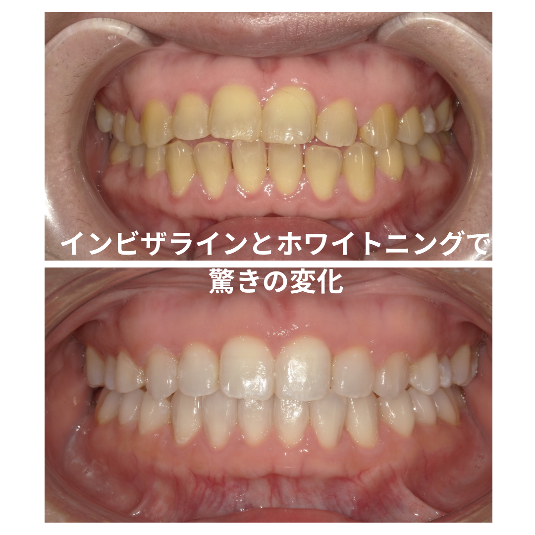 今日は、インビザラインとホワイトニングを両方された方のビフォーアフターをご紹介します。