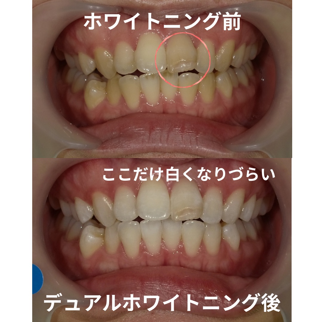ホームホワイトニングとオフィスホワイトニング行っていただいて、全体的に歯が白くなりましが、