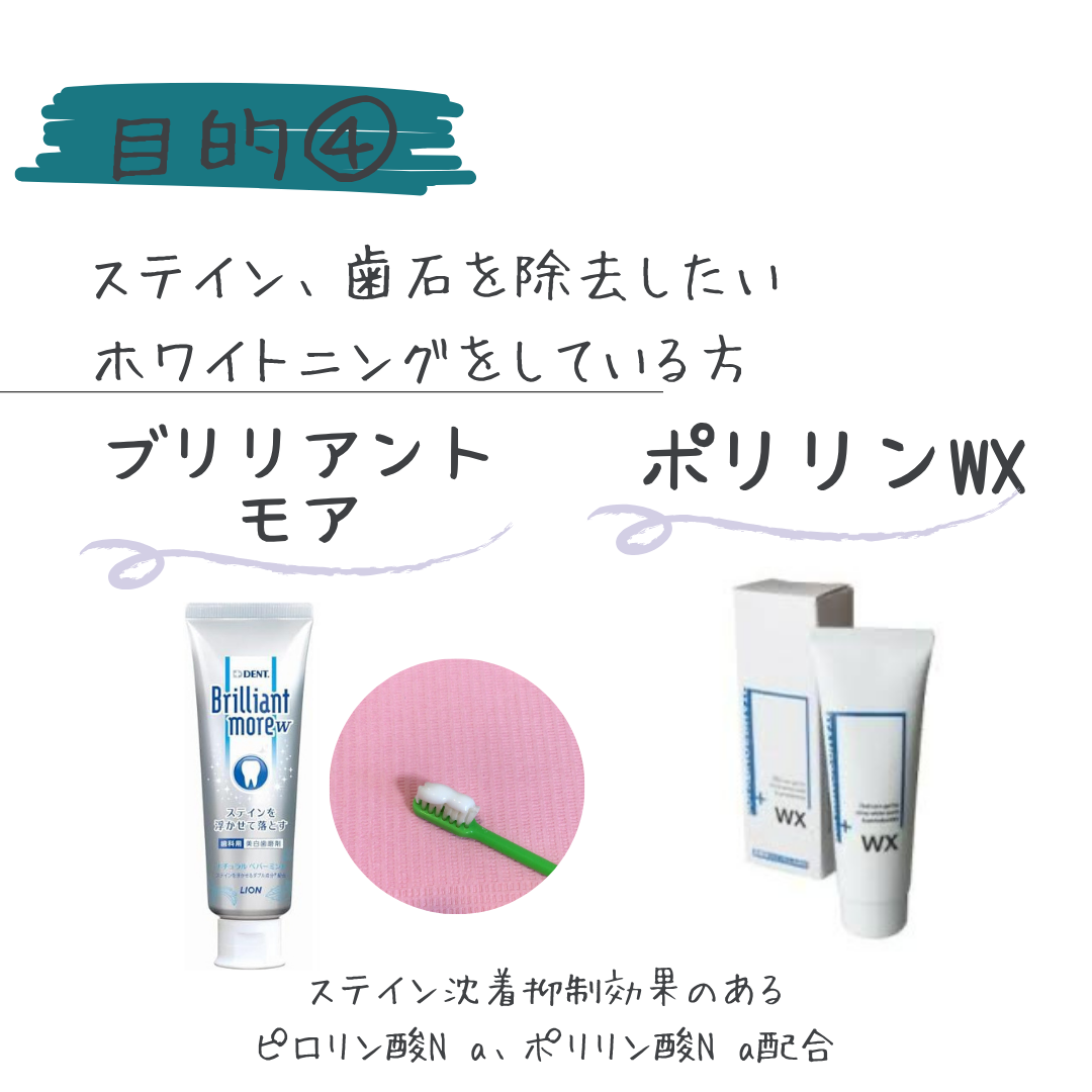 ご自分の症状に当てはまる歯磨き粉を見つけてみてください。
