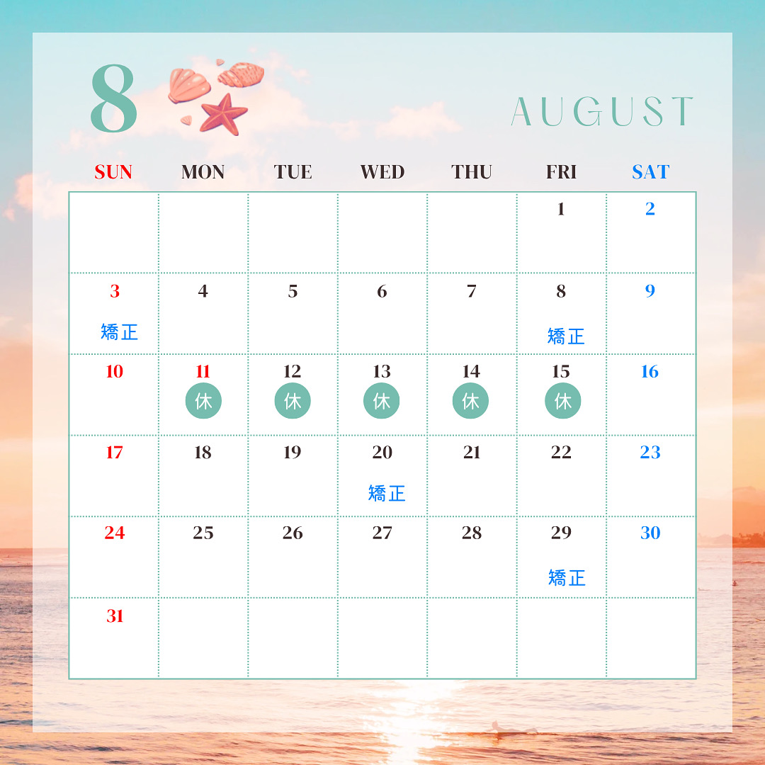8月の休診日と矯正治療および歯並び無料相談の日程のお知らせ